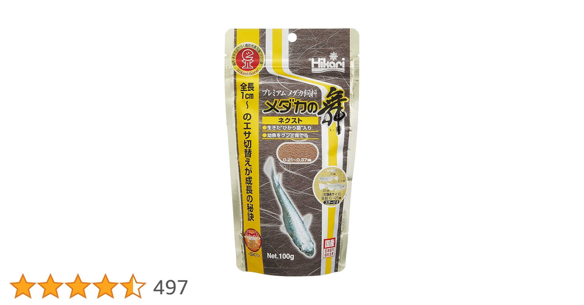 愛好家向けのメダカプレミアム飼料。効率のよい成長を目的とした、嗜好性・栄養価の高い飼料。(幼魚用)…