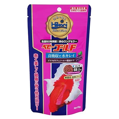 金魚を購入してきたばかりのとき、「さっそくエサをあげたいけど何がいいんだろう」と悩むことがあると思います。そういうときに迷わず選べるのがベビーゴールドシリーズです。特小粒サイズで口の小さな幼魚にもぴったり合い、消化しやすい設計なので水が汚れにくく、育ち始めの大切な時期を安心してサポートできます。Hikariのベビーゴールドシリーズはどこでも手に入りやすく、価格も手ごろなのが長く選ばれ続けている理由のひとつだと感じています。